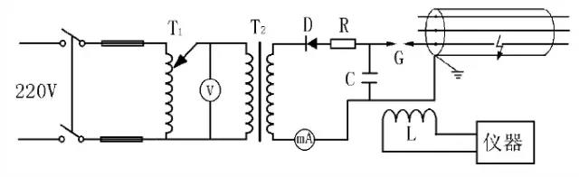 儲能電容C對高頻行波信號呈短路狀態,在故障點擊穿產生的電壓、電流行波到達后,起產生電流信號的作用,脈沖電容器,也可使用6千伏-40千伏(根據電纜電壓等級確定)的電力電容器,電容容量宜選在1~8微法。實際測試中,應盡可能使電容容量大一些,這有助于使故障點充分放電,獲得的脈沖電流波形規范,容易識別。